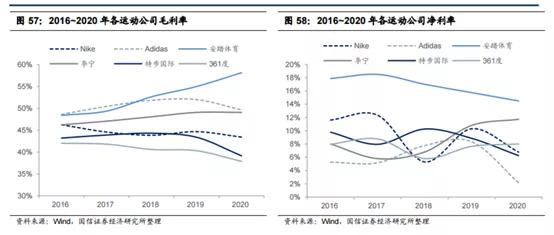 ▲2016-2020各大运动品牌毛利率、净利率。来源:国信证券研究报告