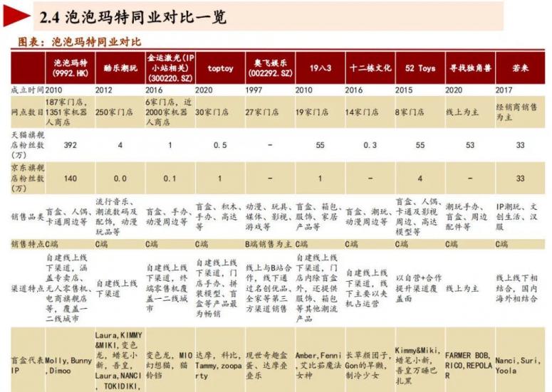 泡泡玛特同业对比情况,来源:招商证券研究报告