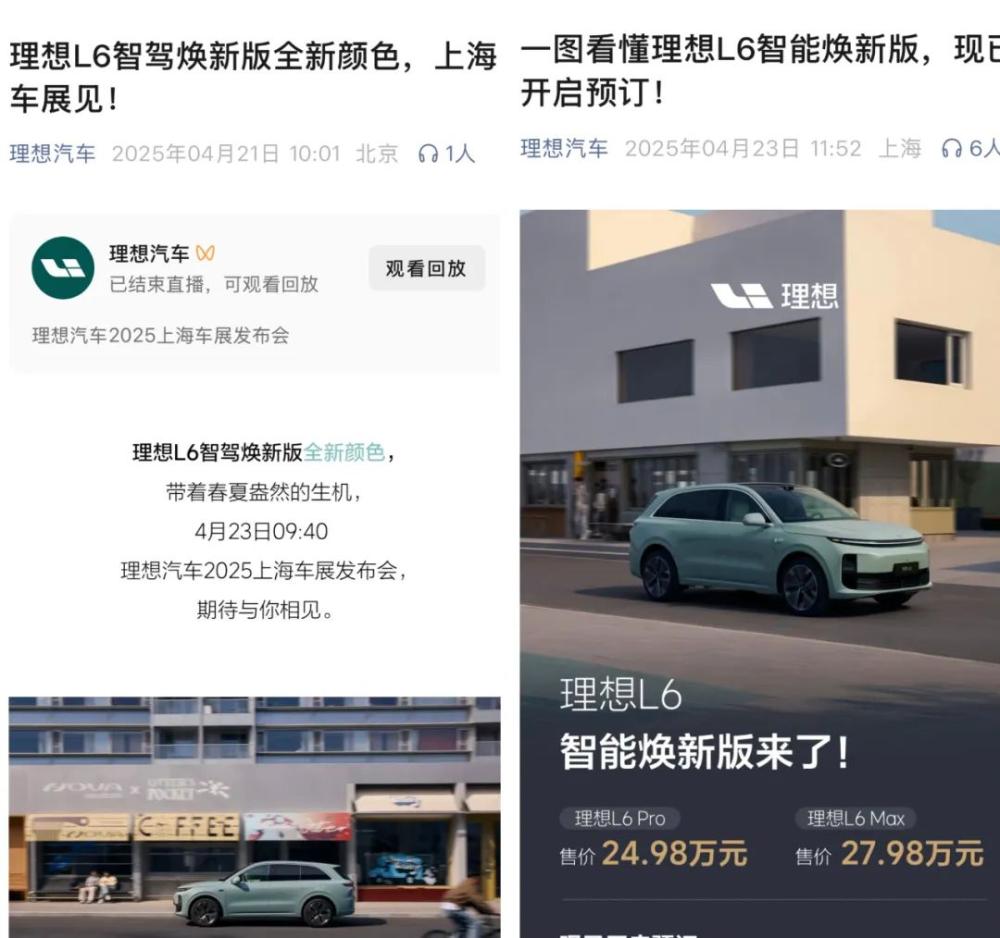 早在小米“智驾”更名之前,理想汽车就已率先行动。4月21日,理想汽车在宣传理想L6改款车型时,海报使用了“理想L6智驾换新版全新颜色,上海车展见”宣传语。然而,仅仅过了两天,“L6智驾焕新版”便更名为“智能焕新版”。