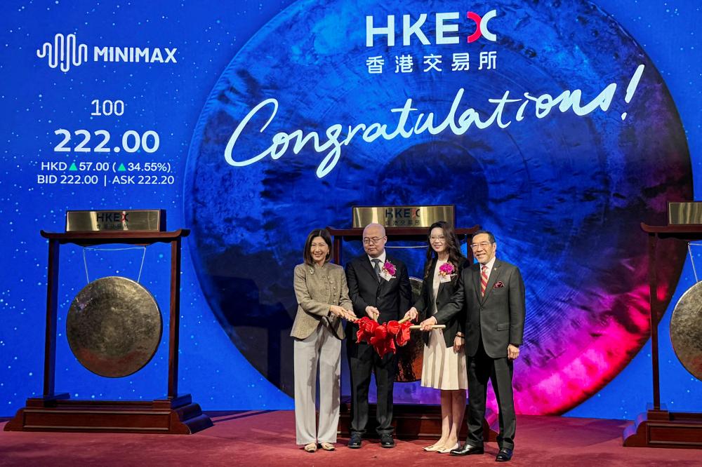 2026年1月9日,MiniMax创始人兼首席执行官闫俊杰(左二)在港交所出席上市仪式。