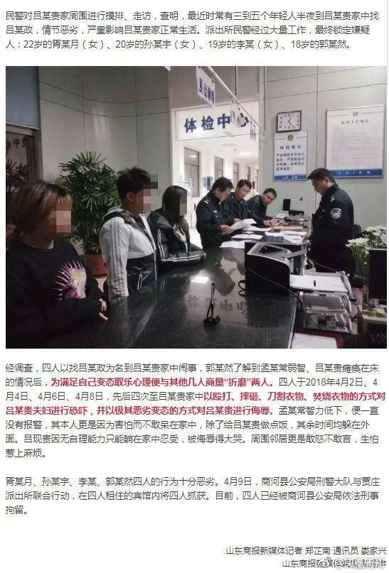 愤怒!济南四青年多次登门侮辱殴打残疾夫妇 只为取乐
