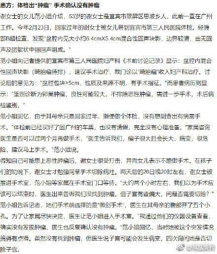 手术做一半发现无肿瘤 医调委建议医院负全责