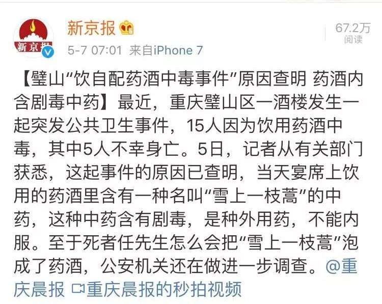 重庆市卫计委组织了11名专家参与抢救工作,还从云南请来了一名治疗药酒中毒的专家,最终确认了中毒原因: