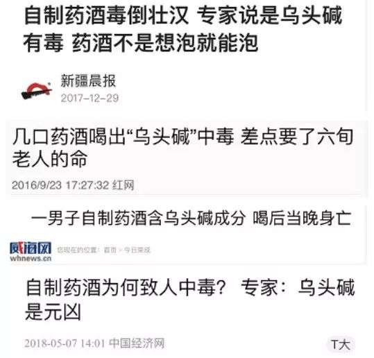 药酒不仅不能治病,还可能会致命,文章开头的任先生不是第一个命丧乌头碱药酒的人,乌头碱也不是唯一致命的药酒成分。