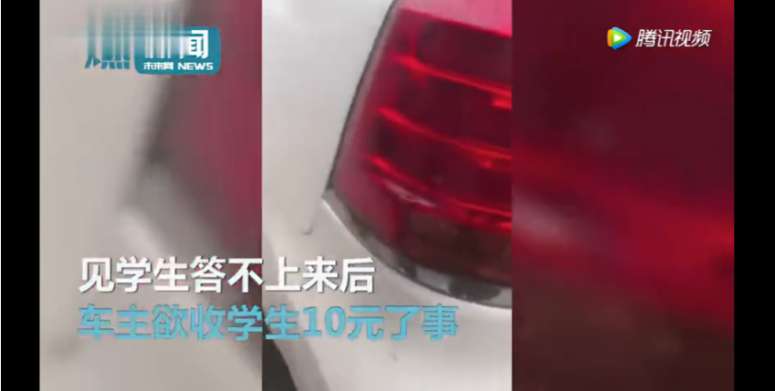 车主问对方打算赔偿多少,学生大概猜到车价值不菲,呆在当场,不敢回答。车主说:“赔十块钱吧?你身上有吗?”