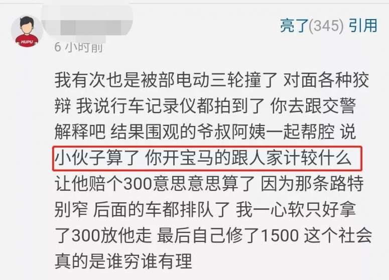 如果是三轮车的错,便会有一些人自觉站队,声援弱者。