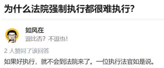 但是更多的,是“法院强制执行”很难成功。在知乎上就有网友提问“为什么法院强制执行都很难执行?”。