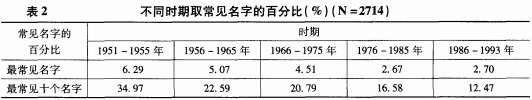 期刊论文《人民演变与时代变迁》提到,中国人常见名字的百分比从上世纪50年代到90年代一直处在下降中。